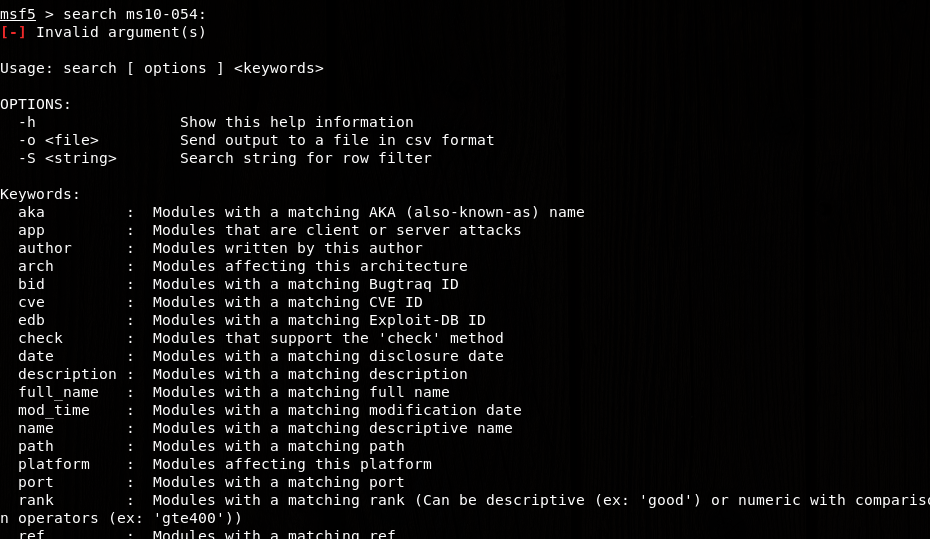 search ms10-054回车 就出现了所有MSF数据库中的关于ms10-054的漏洞