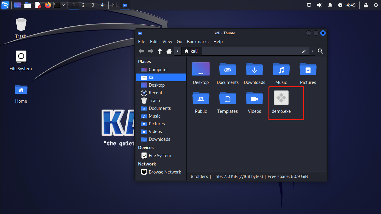 Saved as: demo.exe上面的exe文件会直接被杀毒软件杀掉,可以使用捆绑木马
